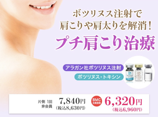 肩こり治療における肩ボトックスは、保険適用にはなりません。品川美容外科のように1回の施術料金が安いクリニックで治療を継続しましょう。